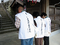 お遍路の基本は、白装束。昔の巡拝者が、死を覚悟して歩まれたことに由来する。笈摺には、お大師さまの宝号「南無大師遍照金剛」が記されている。