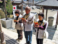 持参した線香と灯明をお供えし、お賽銭をあげます。同時に、お写経や納経札を納めます。