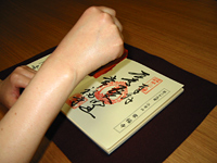 鰐口を鳴らして、気持ちを落ち着けてから読経します。経本を開き、一字一字ていねいにお唱えしましょう。